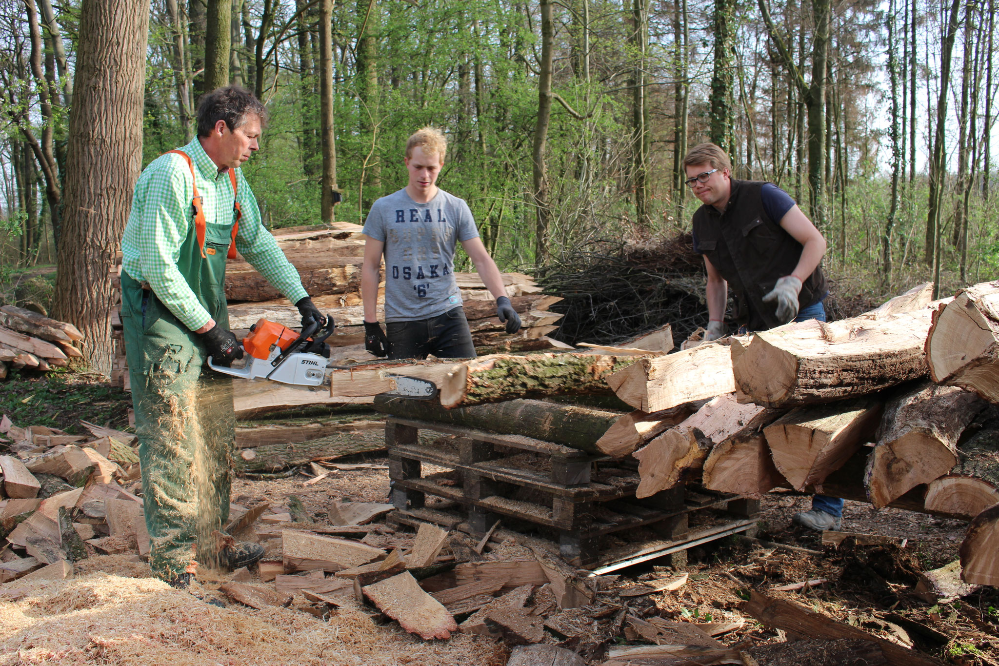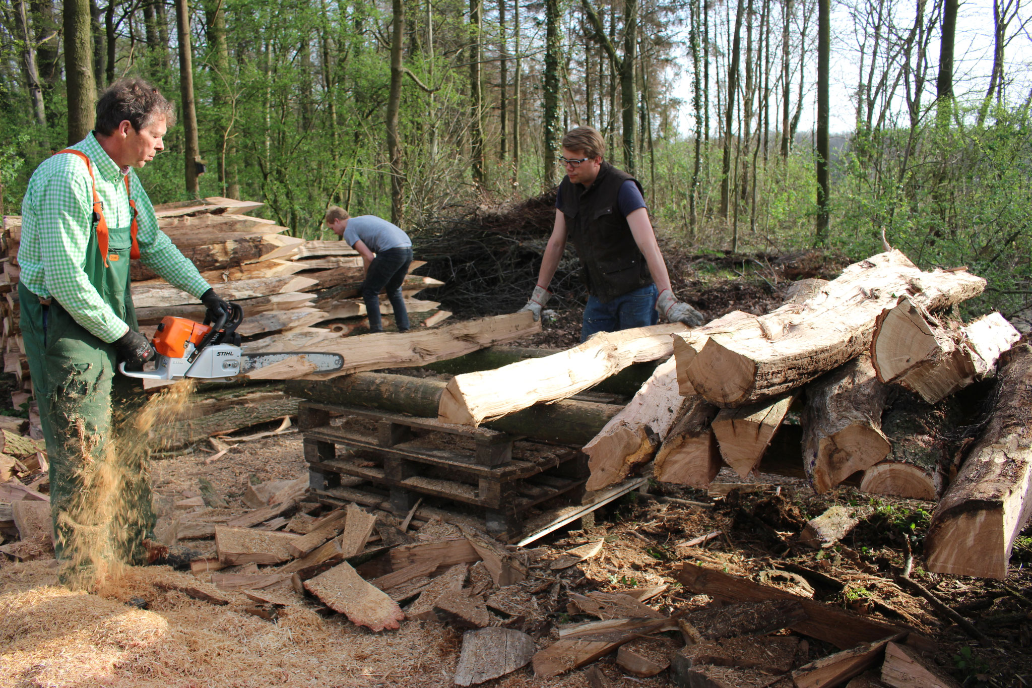 Seit Generationen pflegen wir unseren eigenen Wald. Ein Teil des Holzes nutzen wir, um im Winter unser Haus zu heizen. Regelmäßig forsten wir unseren Wald auf und pflanzen neue Bäume.